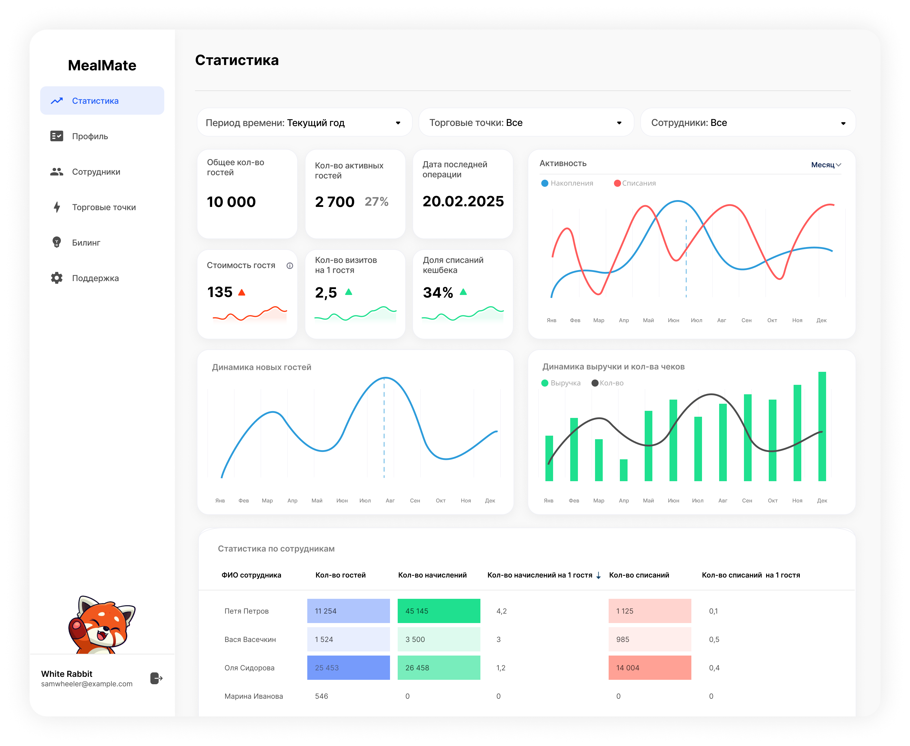 Полную статистику, включая среднюю стоимость гостя